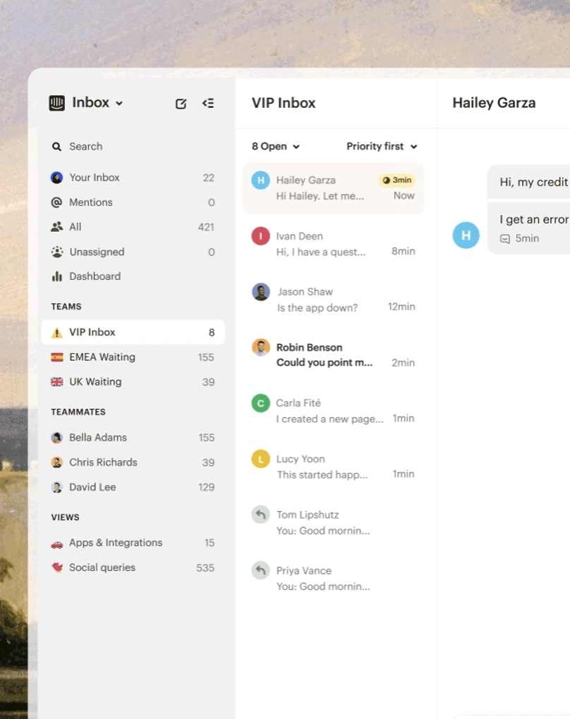 With powerful macros, an intuitive keyboard-first interface, and all customer channels routed into a single inbox, your team can prioritize, resolve, and respond quicker—delivering exceptional support at scale.